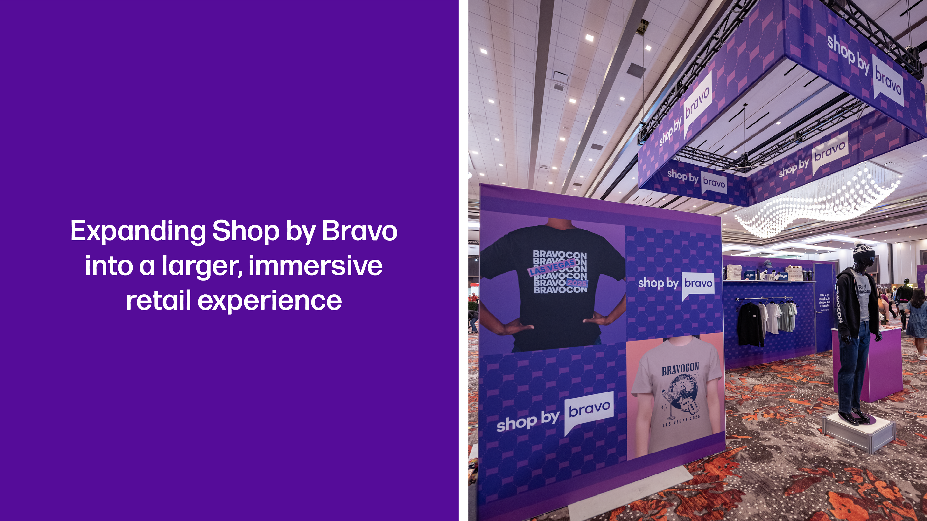 I supported and extended the BravoCon visual system, led the design and visual expression of the expanded retail experience, and collaborated across sponsorships to integrate Bravo IP into partner-led environments. The result was brand-forward spaces that felt authentic to Bravo and the fans.